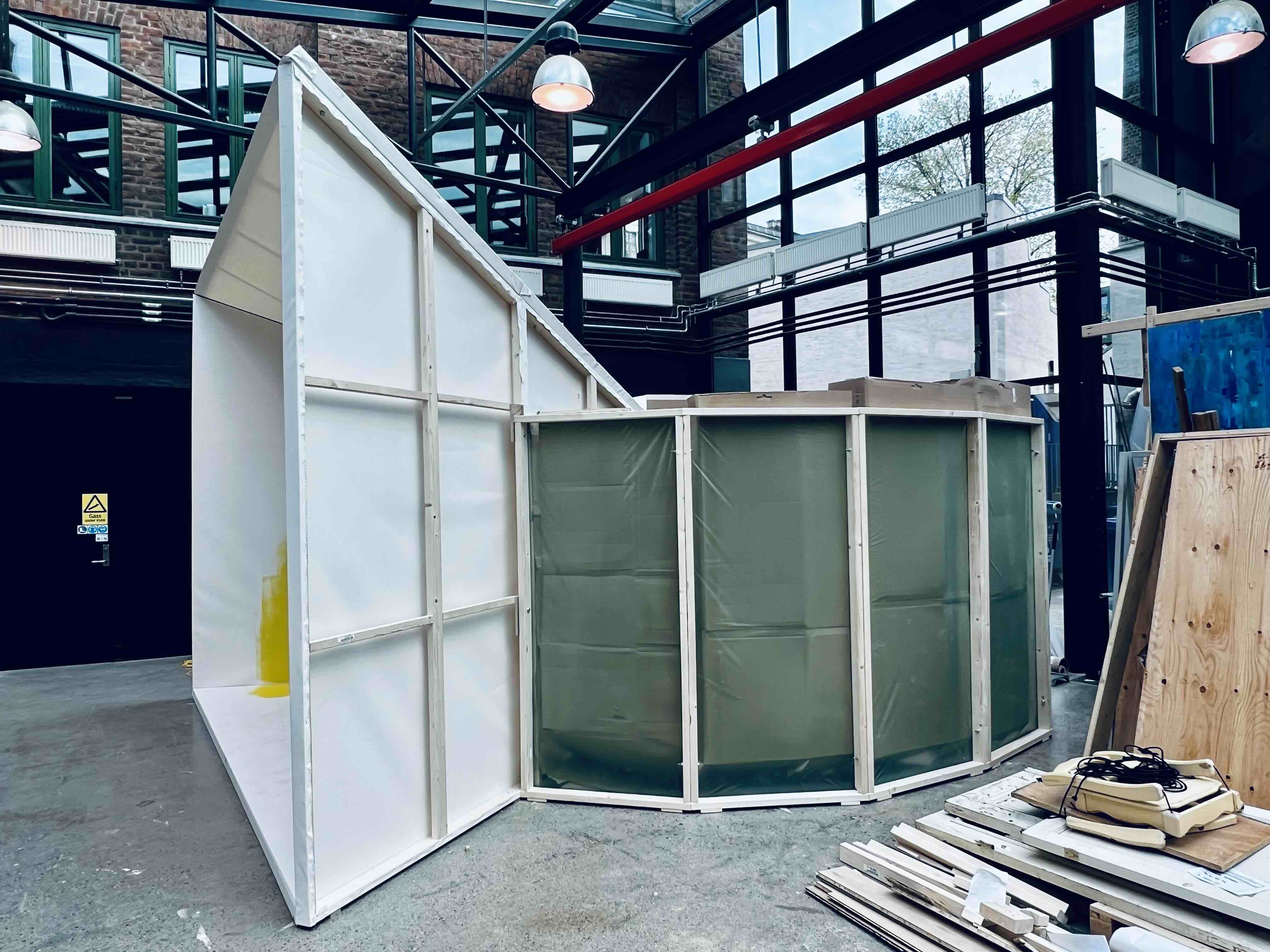A five course-meal! Because we need to allow ourself to enjoy life. It serves as an analogy to tell the story of the dismantlement of the dreamless sleep, then the cleansing of fear and pity, and finally the shift to optimism. All three stages are represented spatially in the installation: through form, materiality, storytelling…