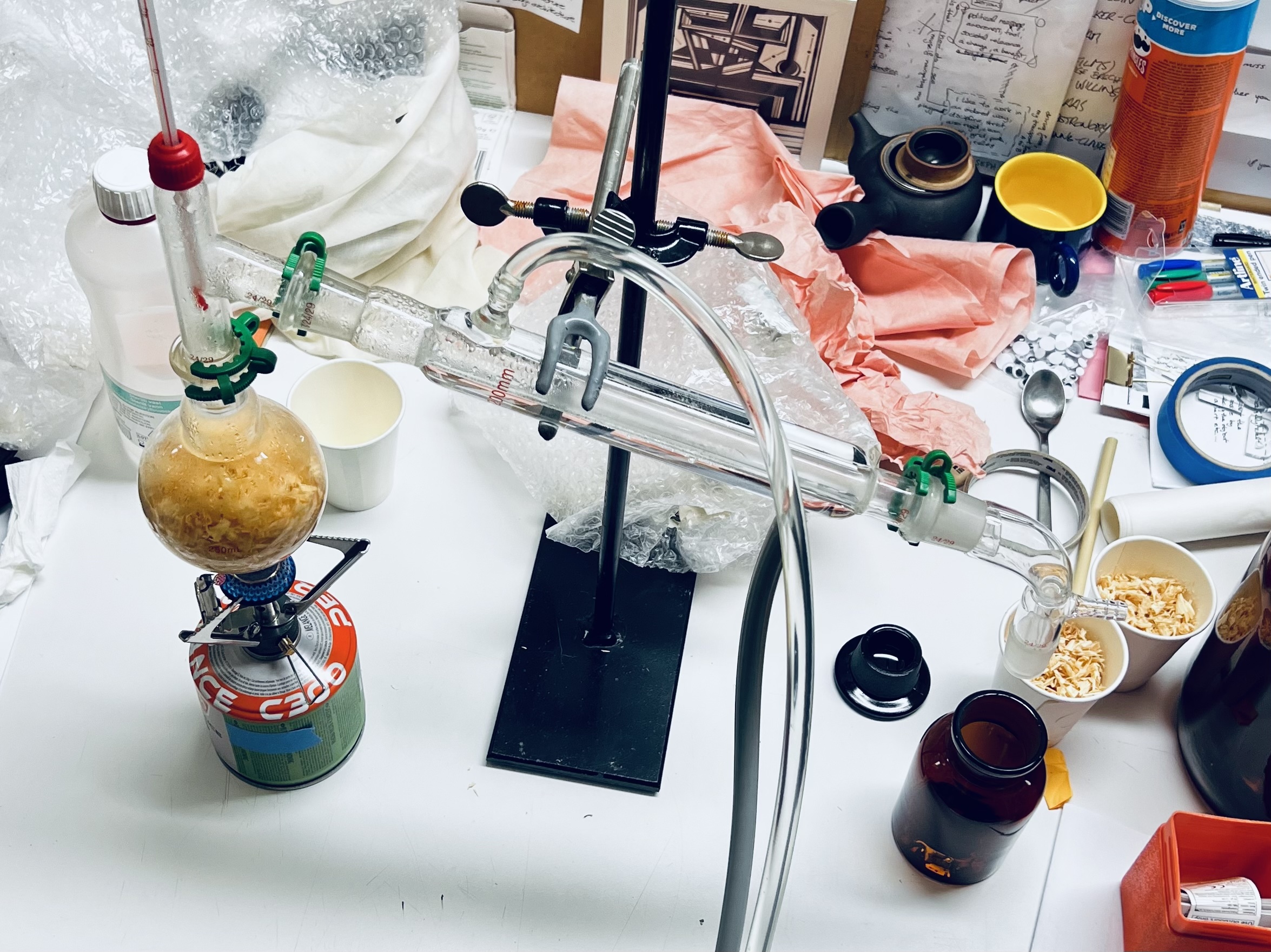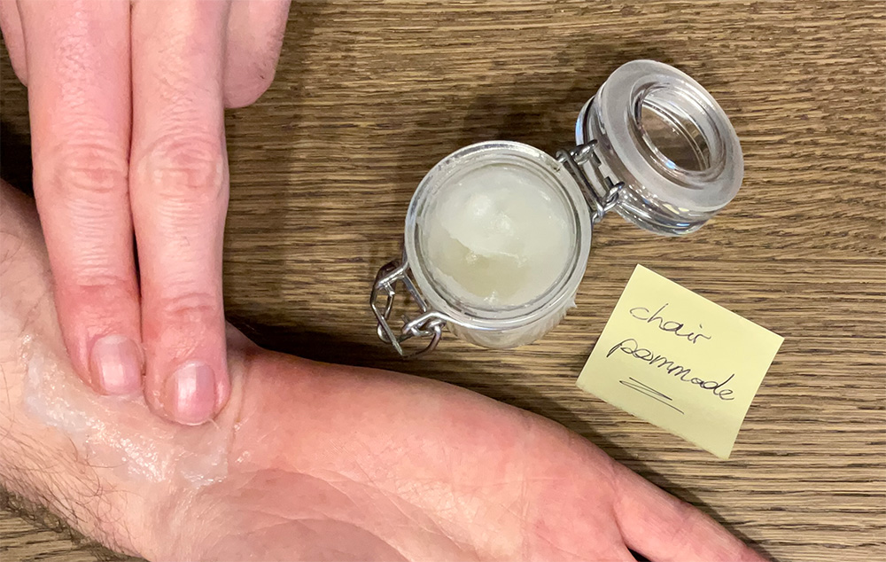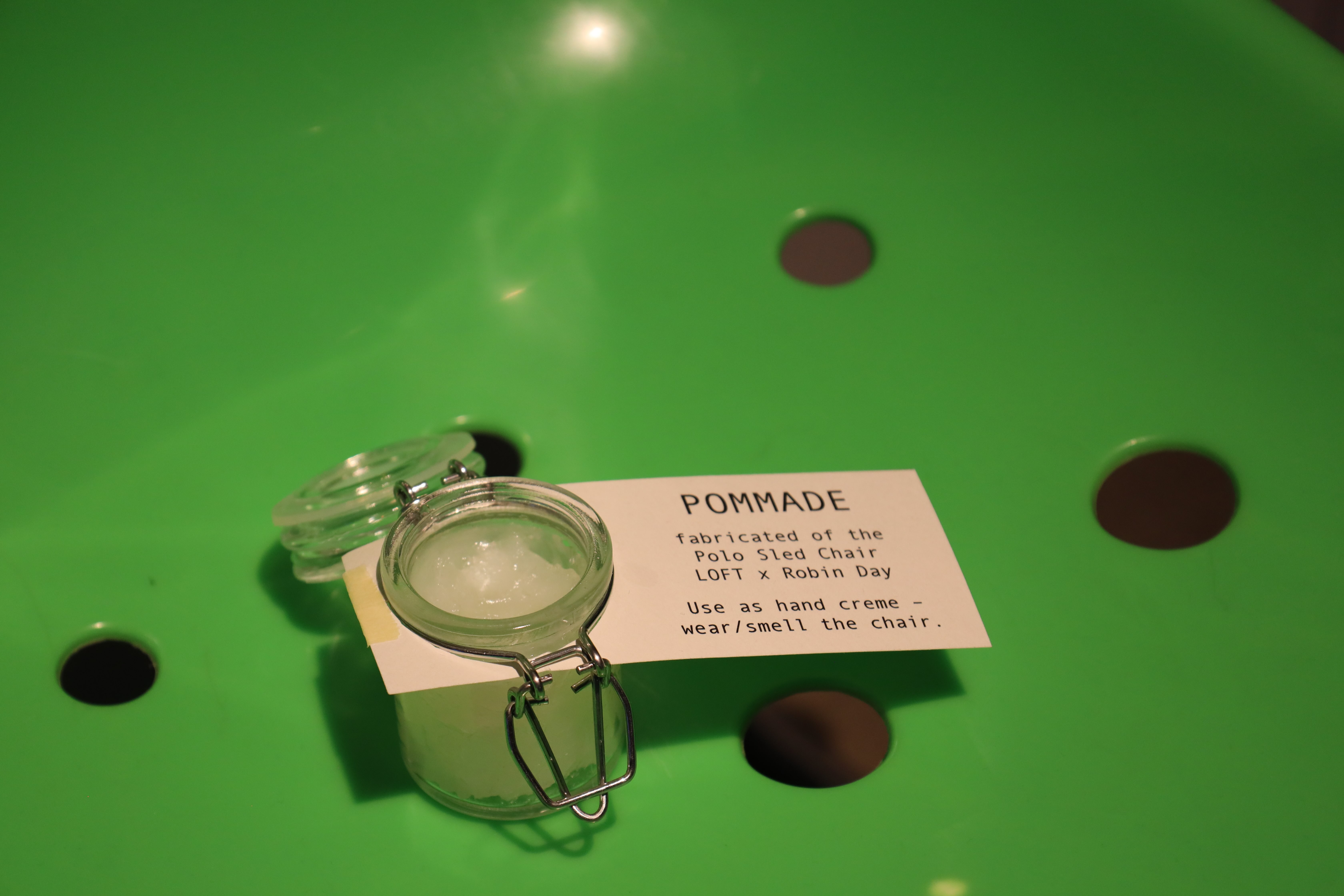 While searching for a deeper meaning in collecting a chairs scent, I came across Joseph Beuys' work Fat Chair. It not only pointed me to a known technique used by perfumers to encapsulate scent molecules in fat, but it would also add a care factor to the project: the healing power of affection, symbolized by fat.