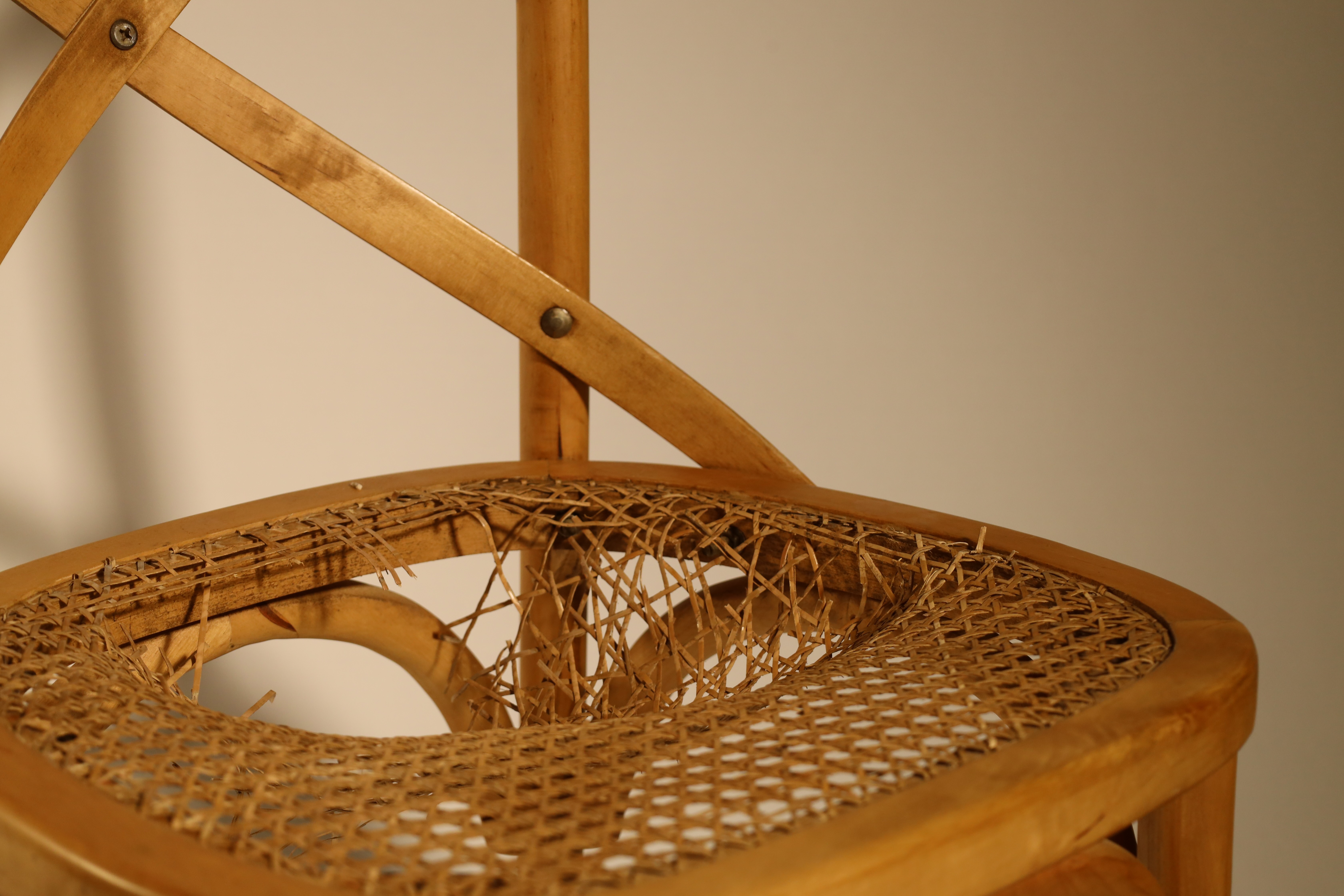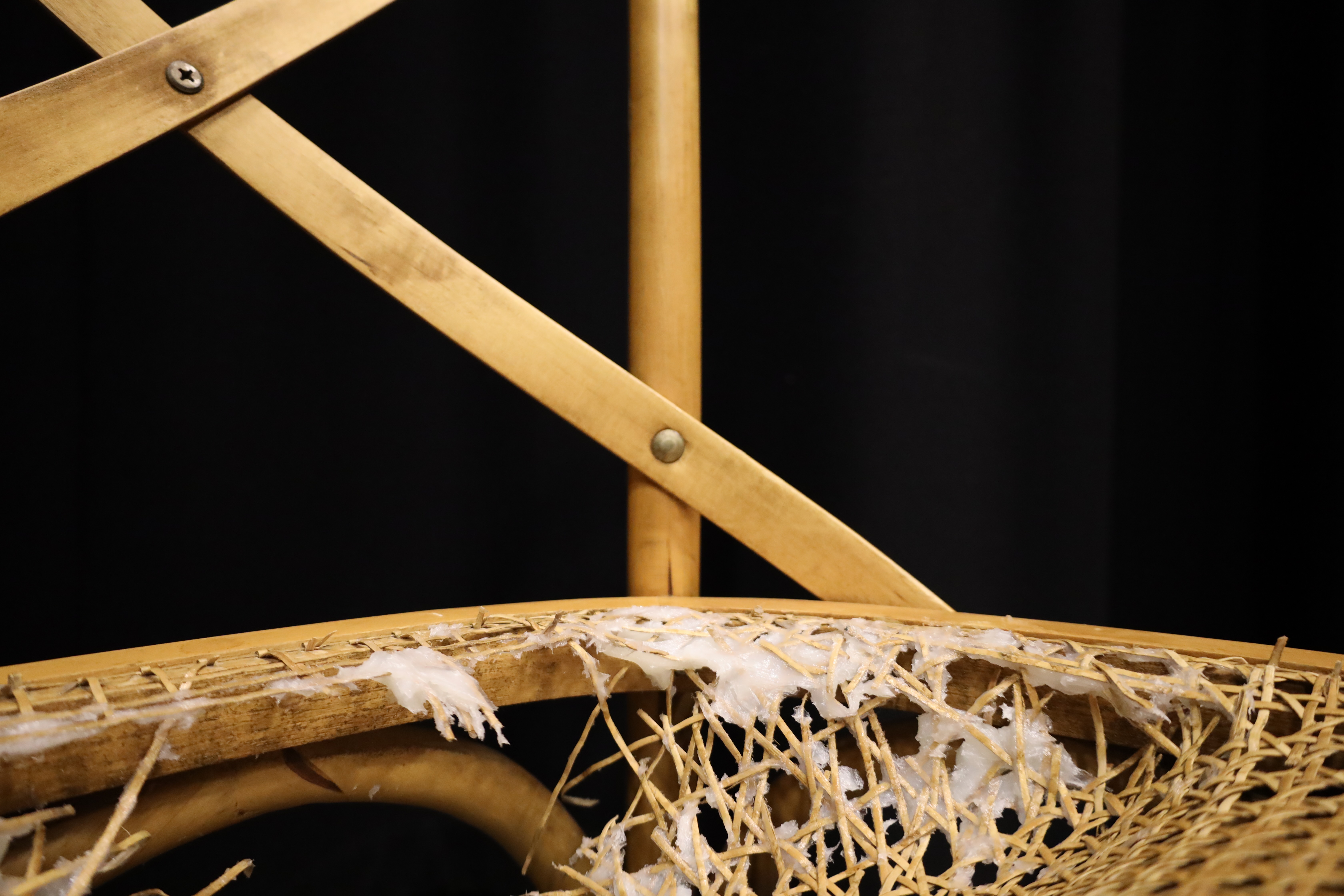 Having noticed the chair's cry for help, I decided to show it respect by treating the wounded areas with an odourless fat that provides warmth and connects to Beuys's beliefs about affection. At this point, I don't think this experiment lives up to his ideals.