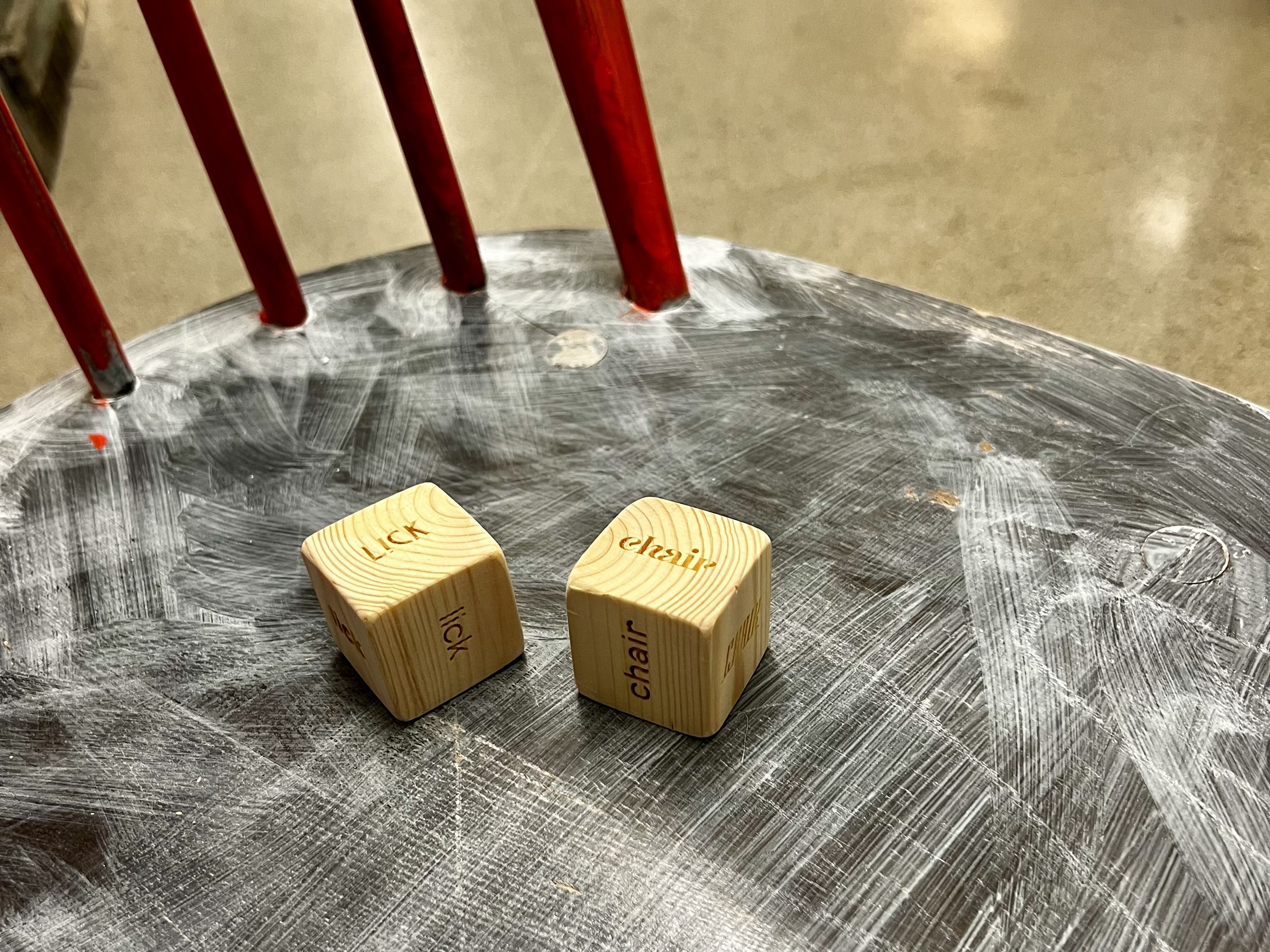 Play became more and more of a way to express my intentions. Balancing humour and seriousness, not coming clean whether I mean what I propose. This is the realm that I feel comfortable in. Welcome lick chair dices.